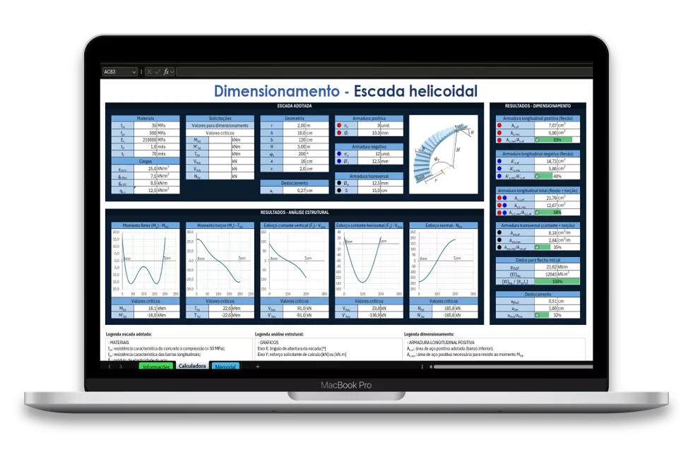 Sim, além do cálculo das escadas também é demonstrado o cálculo de vigas laterais e centrais, montantes, mini sapatas e do pilar central da escada caracol.