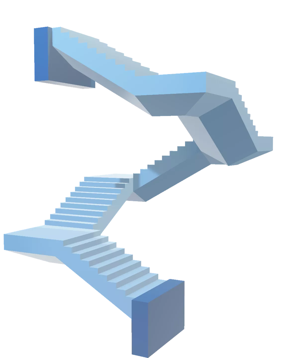 Imponente escada autoportante com 5 lances interligados e mais de 7 m de altura.